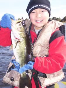 Yushi and his son Atsushi had one awesome day out here, not only catching some good numbers, but also some quality bass at a steady pace. Water temperatures were running right around 59 degrees which did have the bass somewhat scattered, but as long as we were within casting range of the reeds and pads with our shiners, the bass played pretty good.With the artificial baits, Gitem K.O's wacky rigged and twin Liz was the definate way to go. Altho the bite with artificials was more of a light tap and not the wanted aggressive hit, allowing the bass to swim a few extra seconds with your bait was the trick. Keeping track of every cast you made was needed, as these bass would lightly grab the bait and slowly swim away from cover to deeper waters, several times clients have made casts, and did not feel a thing until their bait was within feet of the boat. This is not uncommon, especially when the waters get cold like this.
